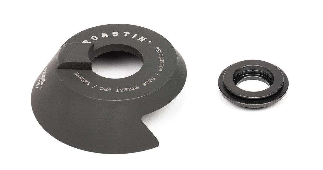 Introducing Tam Roulston's new signature  Roastin' Drive Side Hub Guard. Engineered from heat-treated chromoly, it offers a precise fit for BSD Revolution, Back Street Pro, and Swerve hubs without the need to spread your dropouts. CNC machined for exceptional durability and strength, this hub guard provides the ultimate protection for your hub and chain...